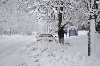 A few days after the snowstorm, it became bitterly cold. Snowpiles became really frozen in place and I had ice "piles" (for lack of better term) at the end of my driveway. It warmed up... if you call 25-33F "warm"... and a little bit of snow melted. Now it's bitterly cold again. That wind is quite biting on the 'ole face. There is still plenty of snow to go around, if anyone is interested!