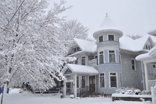 Wow, look at all that snow! That house looks so pretty...in a "I wish I could live there" type of way but then....oh...lots of snow to shovel! lol