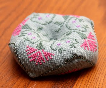 I finished putting together the biscornu I've been working on. All I can say is that I am SO GLAD this is not for an exchange. It turned out terrible! It's got to be the worst thing I've ever made.