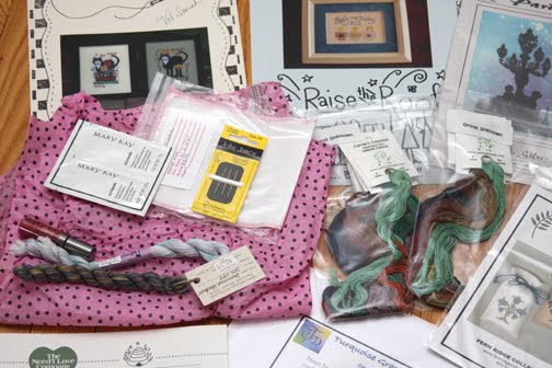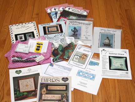 This year, we had somewhere around 44 designers/shops donate goodies for our retreat. A big THANK YOU goes out to Debra H and Aleyna for organizing the retreat and getting the donations. Here's what I came home with (not counting the Free For All table):