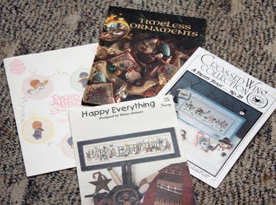 Great deals! Love the minature precious moments & flowers. Lots of progress on your stitching... good for you. Love yard sales too.