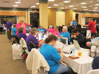 STITCHY FINISH/GIFTBefore the retreat I had a finish, but couldn't show it. That's because it was a belated birthday gift for my PALS roommate, Sue. I was really happy to have finally met her and Laura. Sue loves owls, so I made her a trifold sewing book: