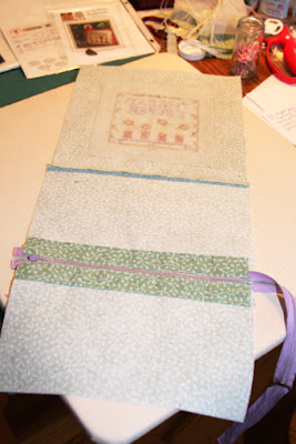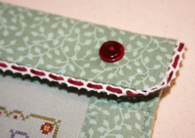 Using the sewing machine, sew "in the ditch" (i.e. in the seam allowance) at the bottom of the Floss Keeper. This forms the bottom of the zipper pocket on the back.