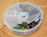 You're probably tired of hearing about my "wonder tool" as Petra puts it, and technically this isn't about the crop-a-dile itself, but about the eyelets. I had several packages laying around taking up more space than I wanted, and I'd been contemplating how to "lose" the packaging and keep all the eyelets in one place. So, I went digging into one of my many boxes yet to be unpacked and found this: