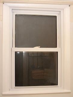 Did I mention the window in the tub/shower area? No??? Well, it needed re-caulking too. So yes, I caulked... and primered the trim and ledge for it also.