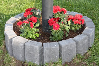 I wanted to plant Mums around the base of the lamp post in the front yard. At the last minute, I decided I wanted to create a flower bed around it THEN plant the Mums. I'm still not sure I like it, but it'll do for this year.